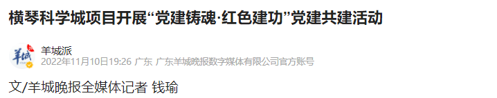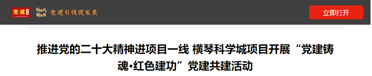 “本次‘黨建鑄魂·紅色建功’黨建共建活動是在大橫琴集團打造橫琴科學城項目黨建聯(lián)建生態(tài)圈的基礎上的一次深化拓展,對推動黨建和項目建設的融合發(fā)展,引導一線黨員堅定理想信念,牢記黨的宗旨,增強責任擔當,有著積極意義,將進一步推動黨的二十大精神在重大項目一線落地見效?!贝髾M琴集團黨委書記田偉介紹。