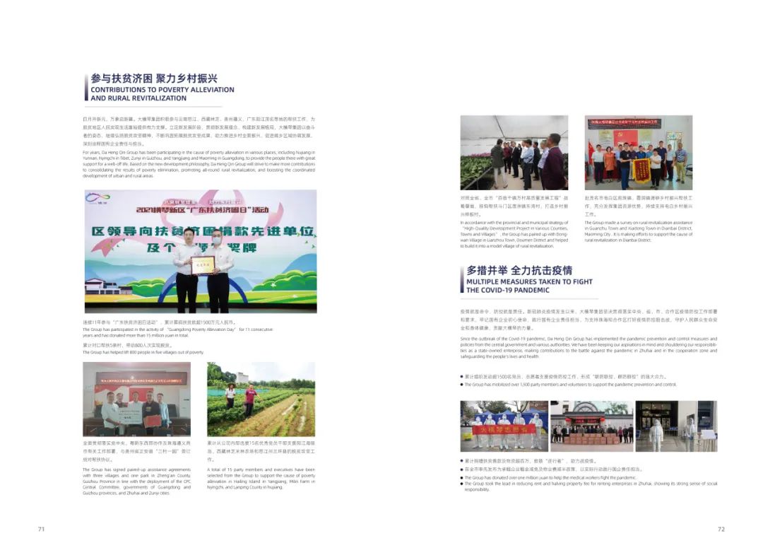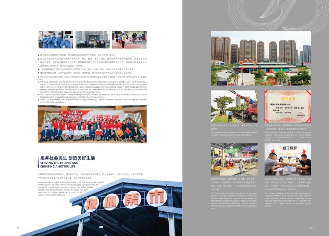 積極參與云南怒江、西藏林芝、貴州遵義、廣東陽(yáng)江茂名等地的幫扶工作,助力推進(jìn)鄉(xiāng)村全面振興;在疫情防控的特殊時(shí)期,舉全集團(tuán)之力支持珠海和合作區(qū)打好疫情防控阻擊戰(zhàn);主動(dòng)投身社會(huì)民生事業(yè),開(kāi)展公益活動(dòng),為珠海建設(shè)民生幸福樣板城市貢獻(xiàn)力量……