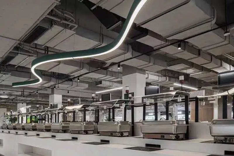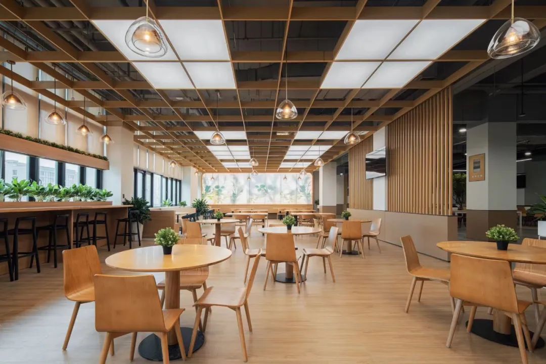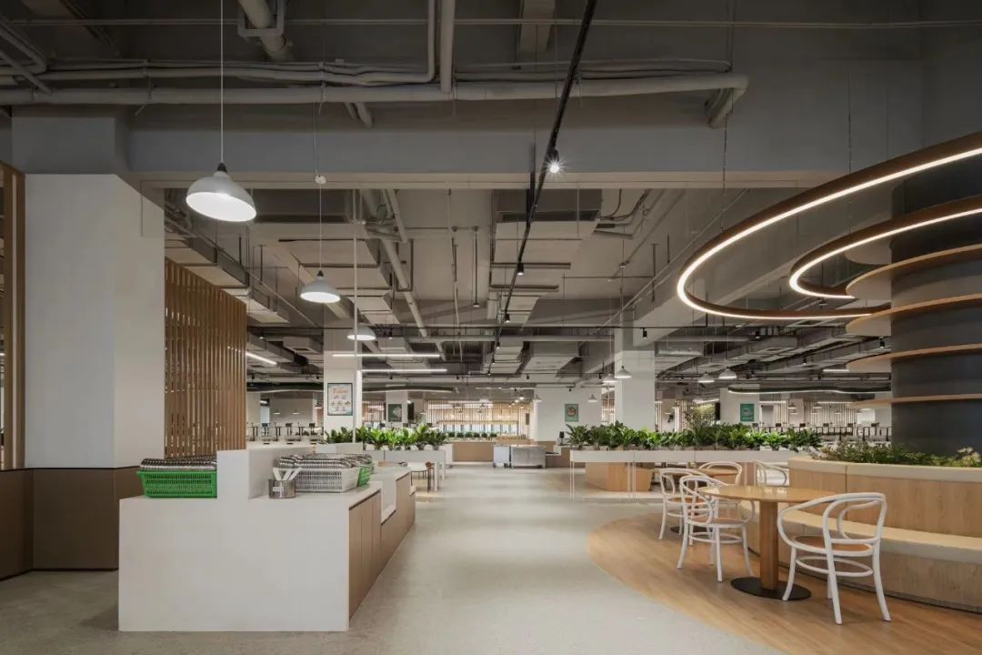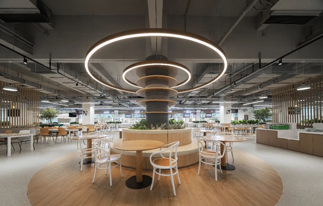 食堂在設計時,就充分考慮這還是一個社交空間,空間上分割成滿足不同社交需求的空間,靈動多元。