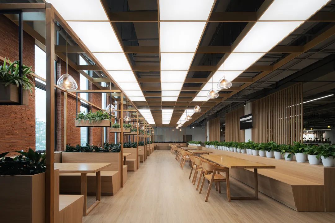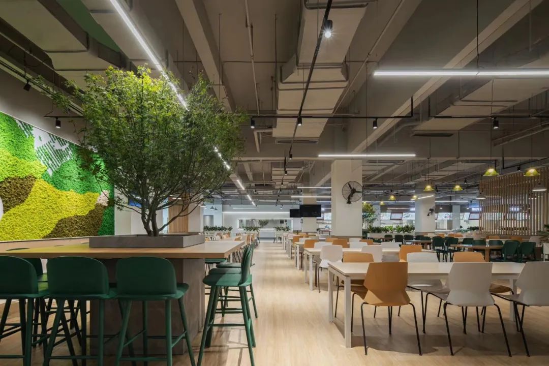 走進“廠其林”食堂,仿佛將一片小森林搬了進來。
